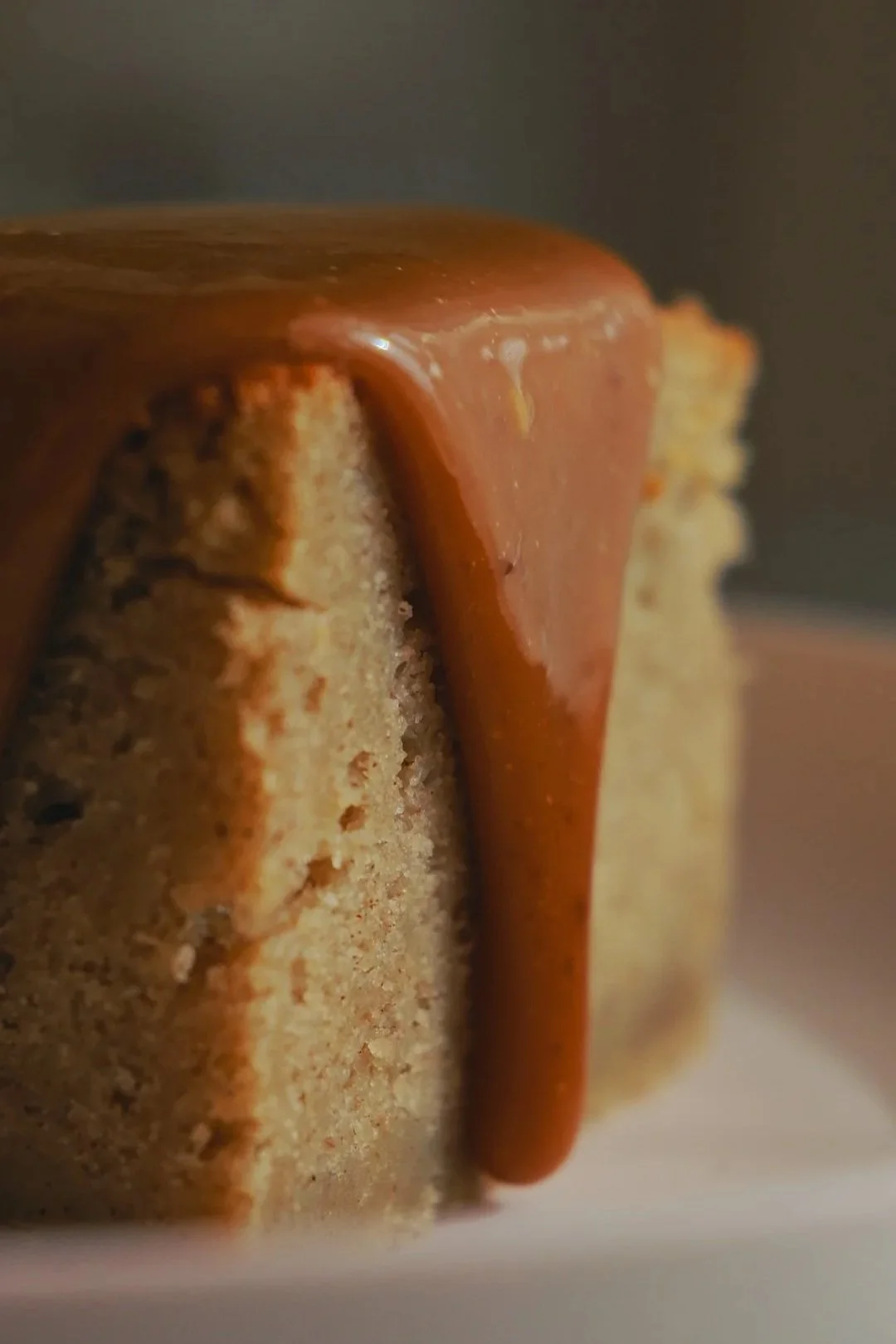 Misokaramellen giver kagen et overraskende og raffineret twist. Den lyse miso tilfører en diskret saltet umami, som fremhæver karamellens sødme og gør smagen mere kompleks uden at tage fokus. Resultatet er en karamel, der føles dyb, rund og balanceret – perfekt til at hælde generøst over den lune eller afkølede kage.